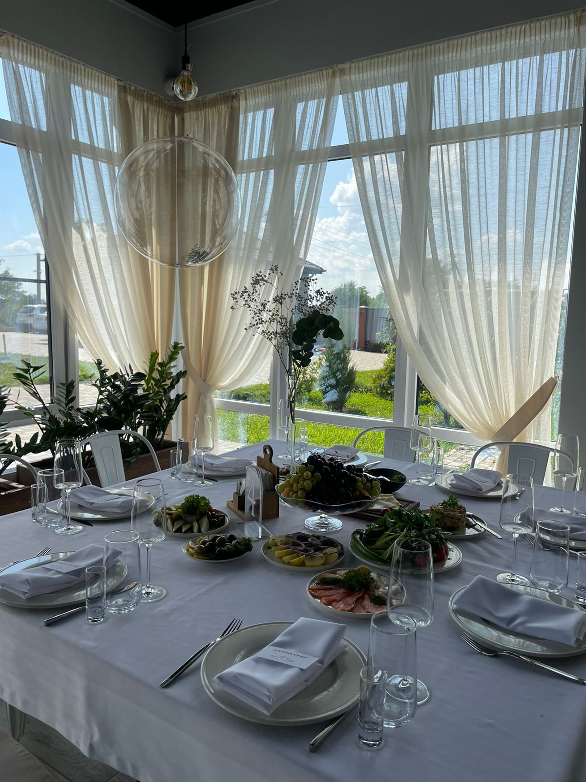 При входе в зал Вы сразу почувствуете атмосферу торжества, которая будет сопровождать Вас и Ваших гостей на протяжении всего мероприятия. Здесь Вас ждут изысканные блюда, приготовленные специально для Вас и Ваших гостей нашими поварами.